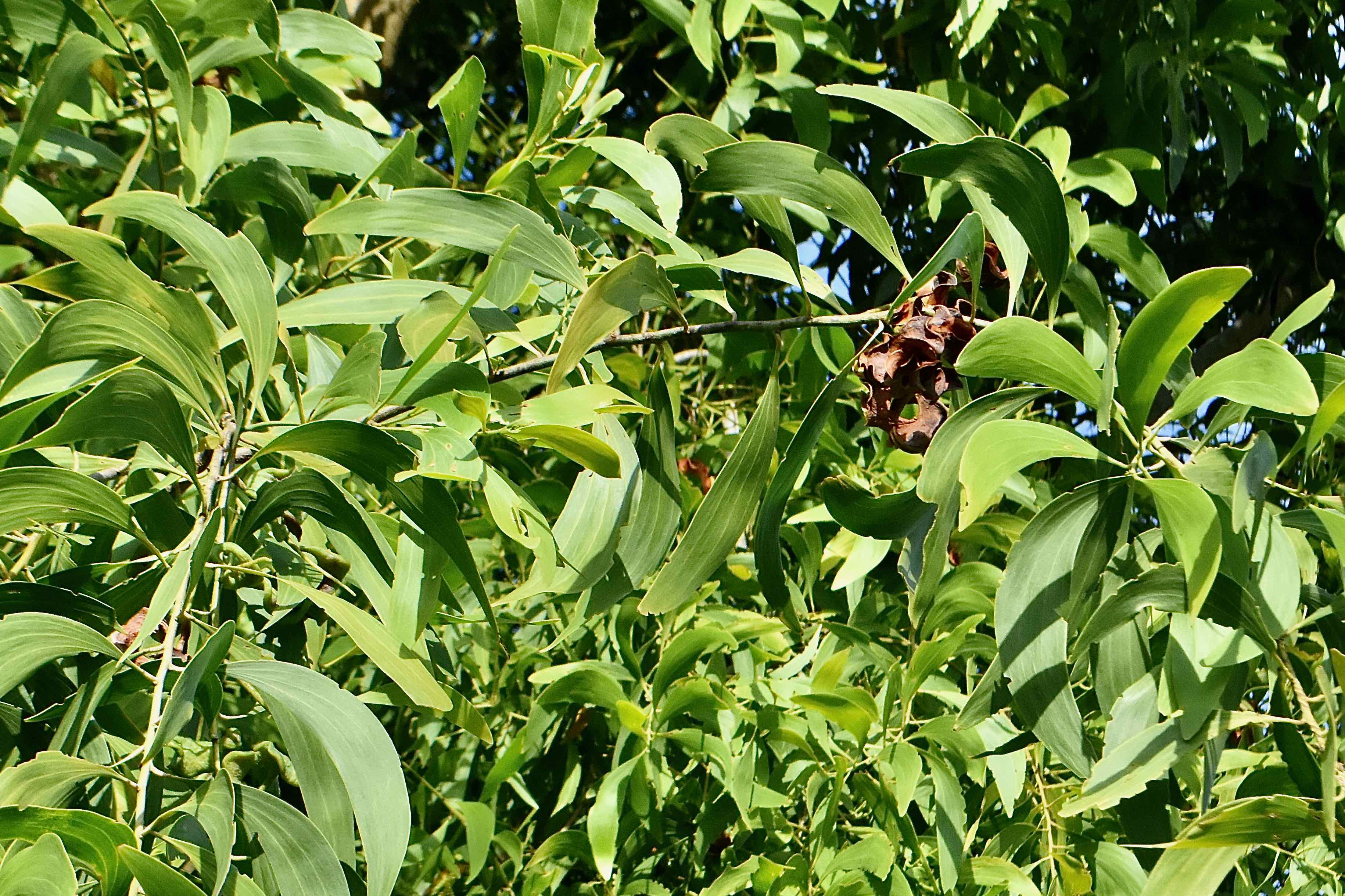 Earleaf acacia reproduces like crazy and can invade in a variety of habitats, dry or wet, and thrive in all of them to the point of crowding out native vegetation. More mundanely, it is a messy tree; park your car underneath one and you might find it buried under a pile of leaves and seed pods. Having once lived at an apartment complex where they were planted along the parking lot, we exaggerate only slightly.