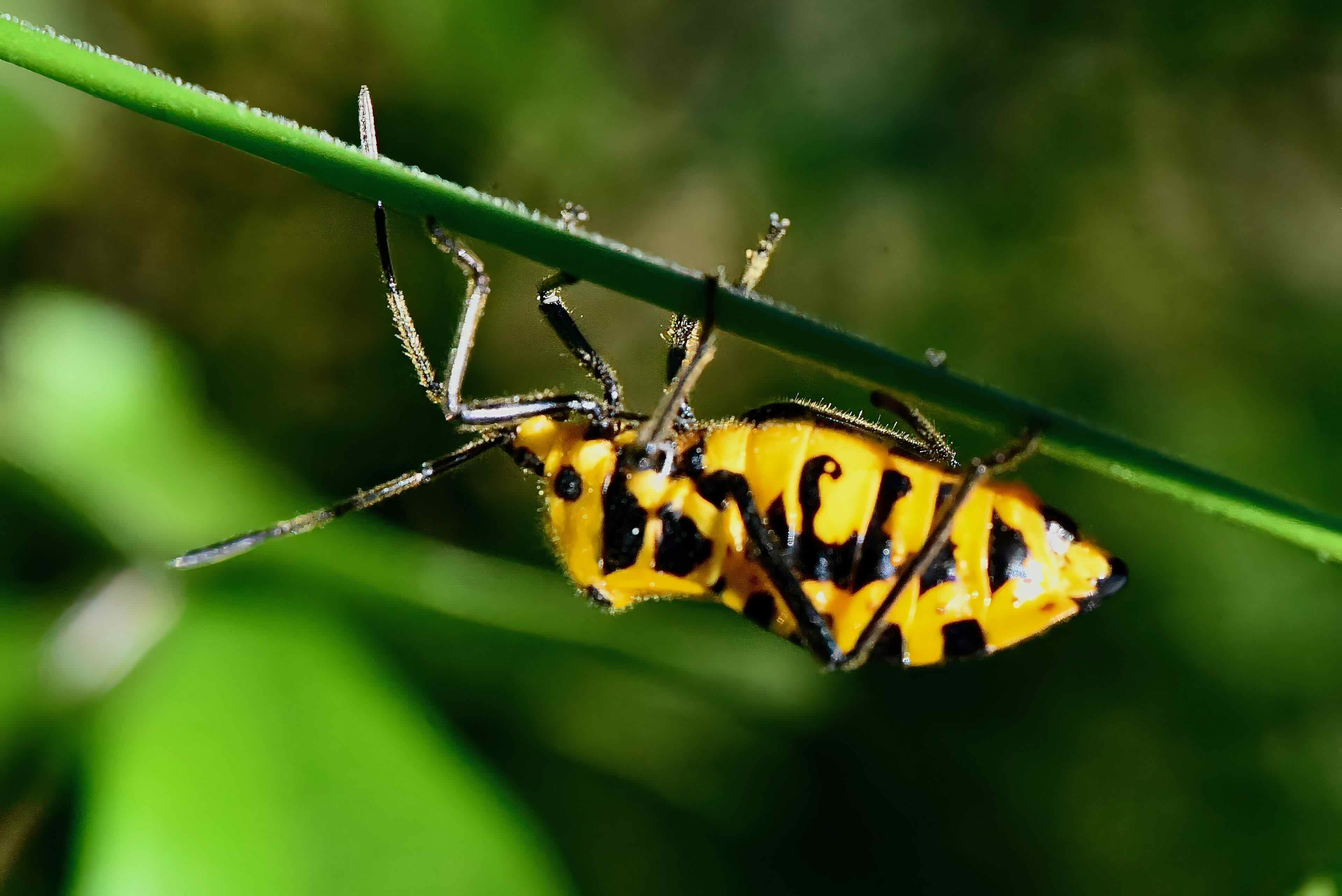 Giant milkweed bugs are not really giants, going only about two-thirds of an inch in length, but they are about a third larger than large milkweed bugs. They’re a bright yellow-orange with black markings above and below, also similar to large milkweed bugs as we noted above. The markings are sufficiently different that it isn’t difficult to tell the two apart sans measuring stick.