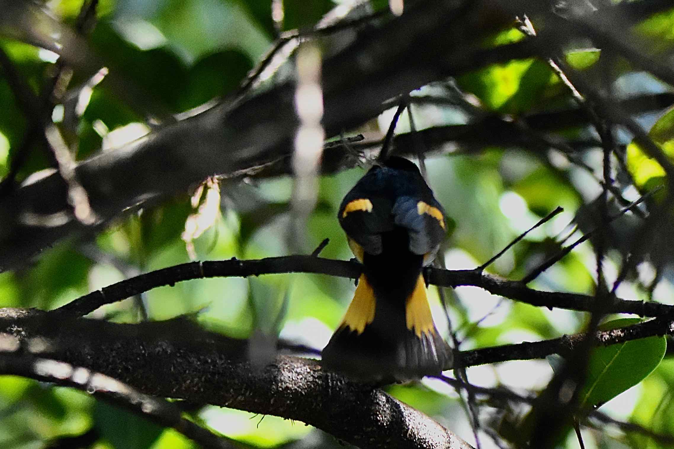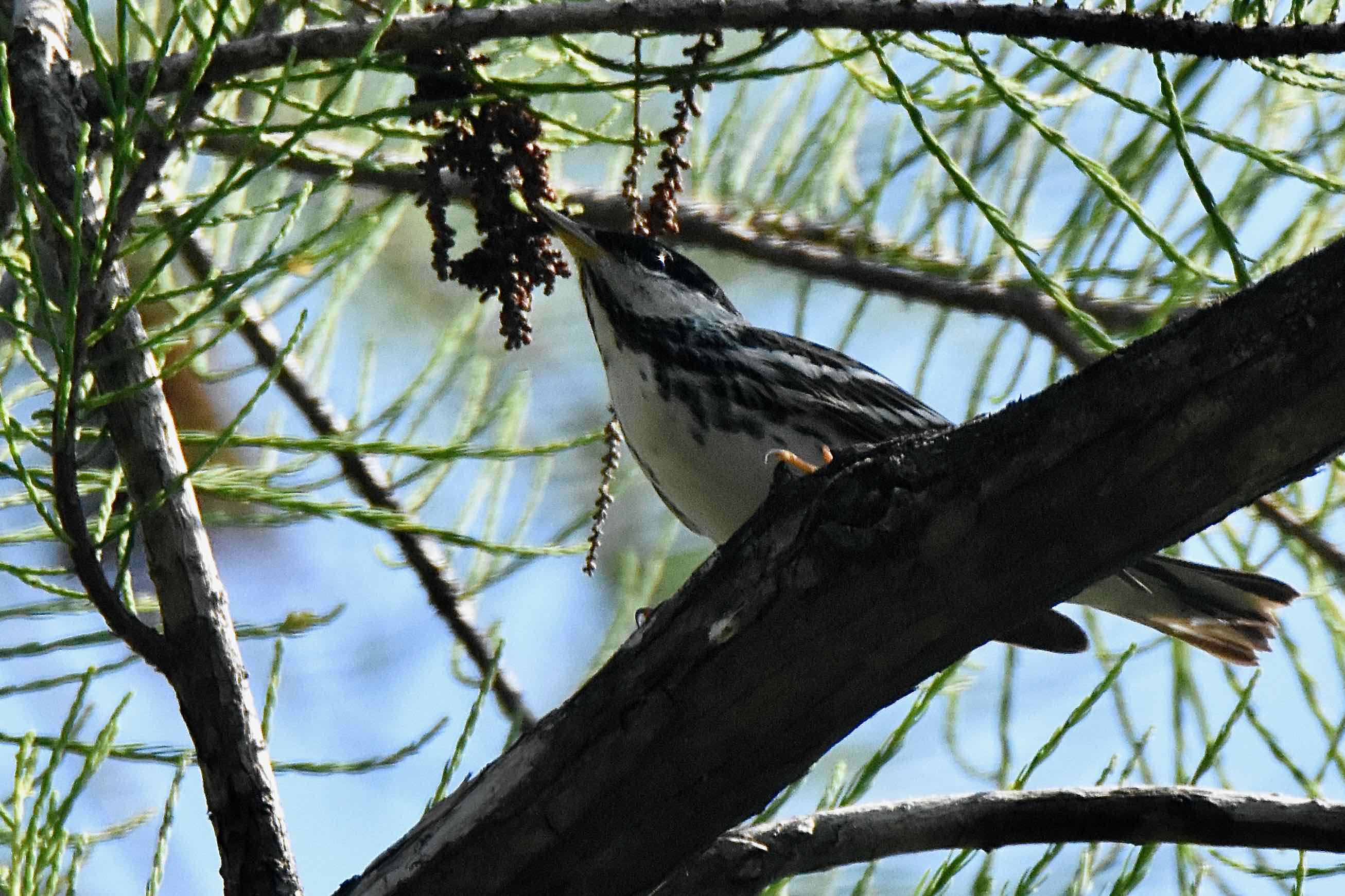 Cover Photo: A blackpoll warbler foraging in a cypress tree. We found Apoxee Trail an especially good place to spot warblers during spring migration.