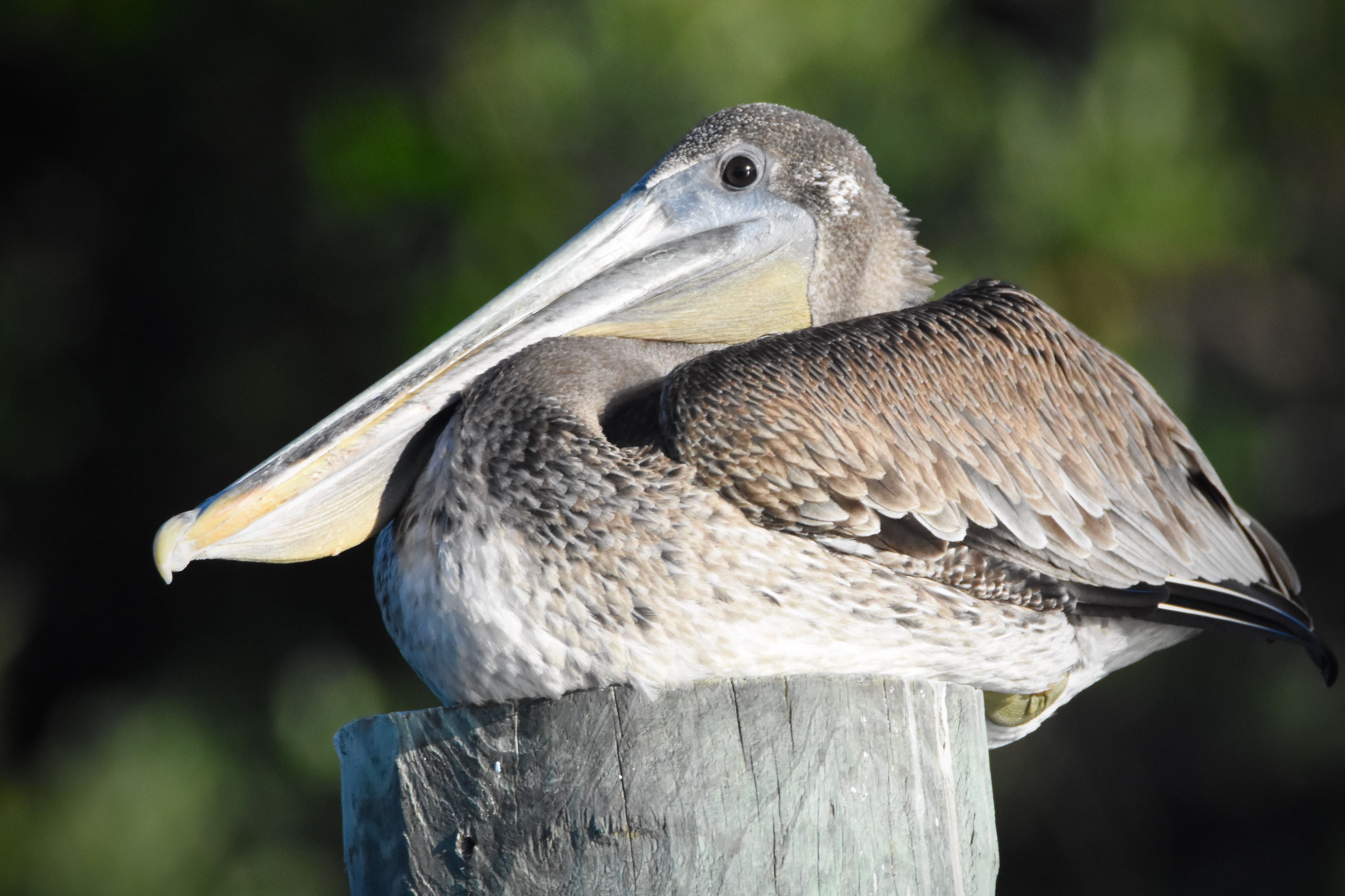 Brown pelicans are members of Pelecanidae, the pelican family, and year-round residents of Florida.