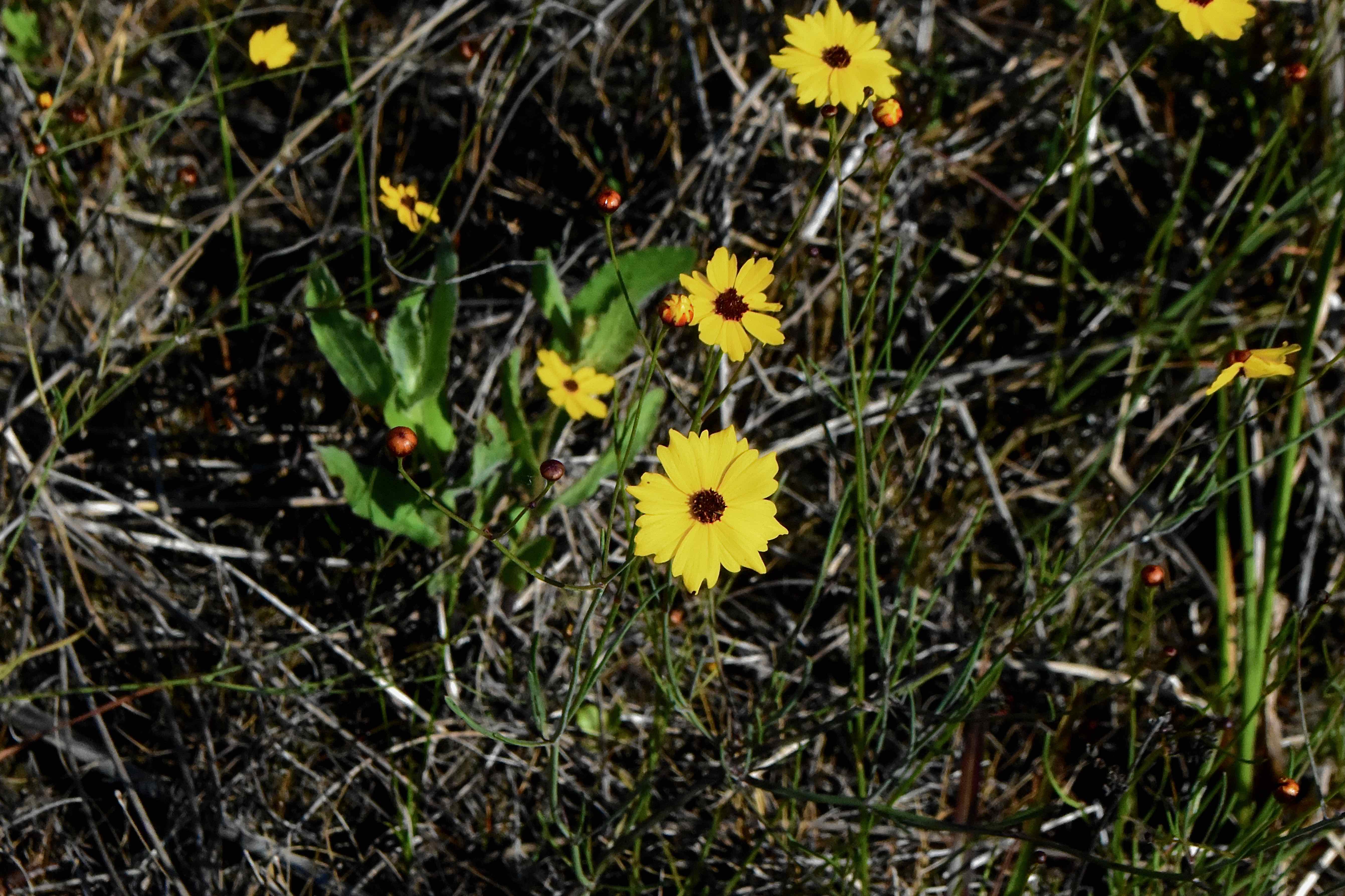 Florida tickseed, on the other hand, is rare. It's found only in the Sunshine State. It's the other South Florida species, but according to the Institute for Regional Conservation, it might be extinct in Miami-Dade and Broward counties; it was last reportedly seen in Parkland in northwest Broward back in 1982. IRC considers it imperiled in South Florida, but it's not legally listed by any state or federal agency as endangered or threatened. It's slightly taller than Leavensworth, standing two to three feet, but again, a narrow plant with sparse vegetation. It likes moist to wet soil. As might be expected, it is a nectar source for butterflies.