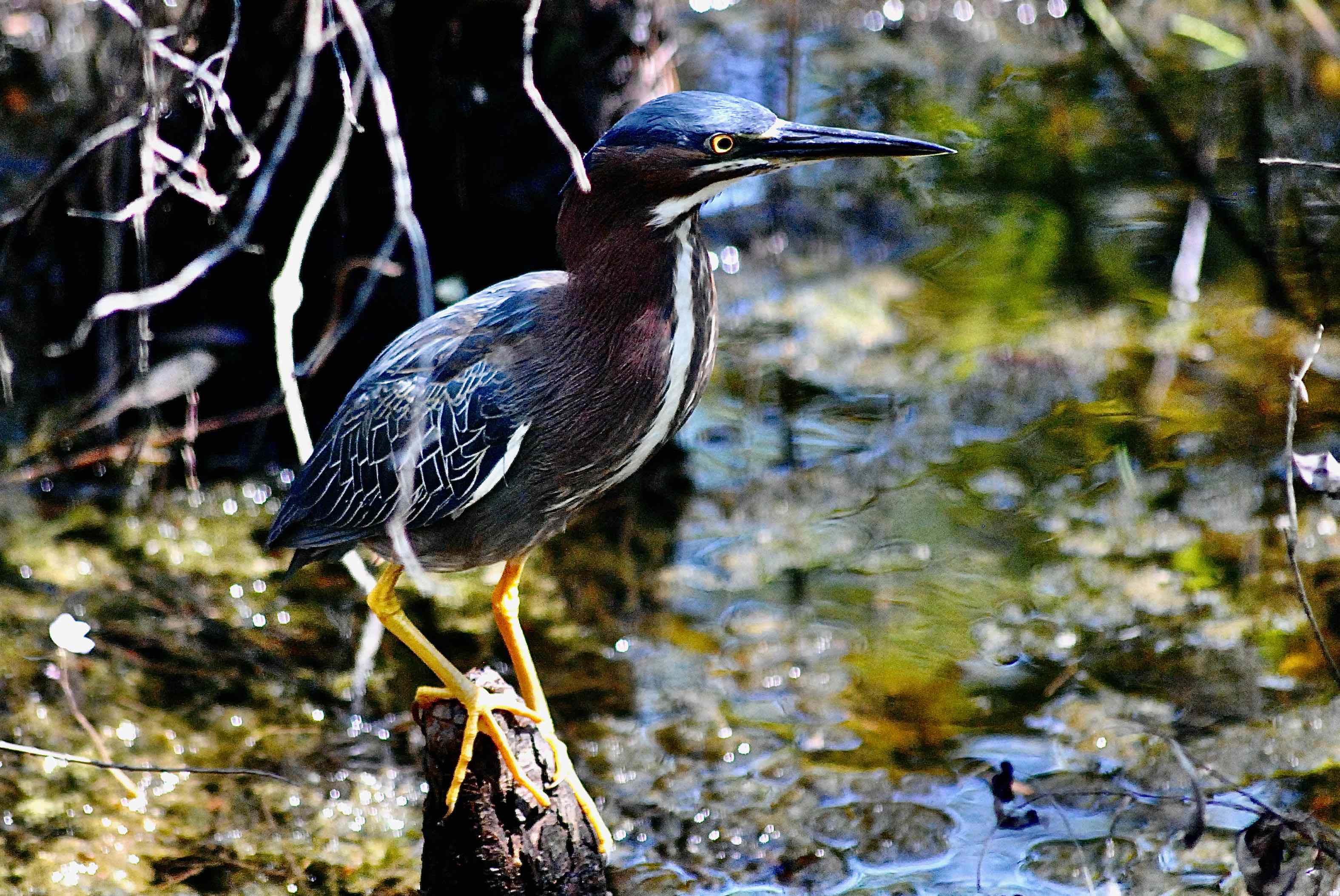 Cover Photo: A green heron forages in the dampness of the cypress swamp. As noted above, the birding at Grassy Waters is good enough to earn a spot on the Great Florida Birding Trail. Second Photo: The swamp itself as seen from the boardwalk. Note the narrow diameter of the tree trunks here. Hard to tell if it's a relatively young section of swamp or the outer perimeter where cypress trees tend to be stunted by a lack of nuttients in the water and soil.