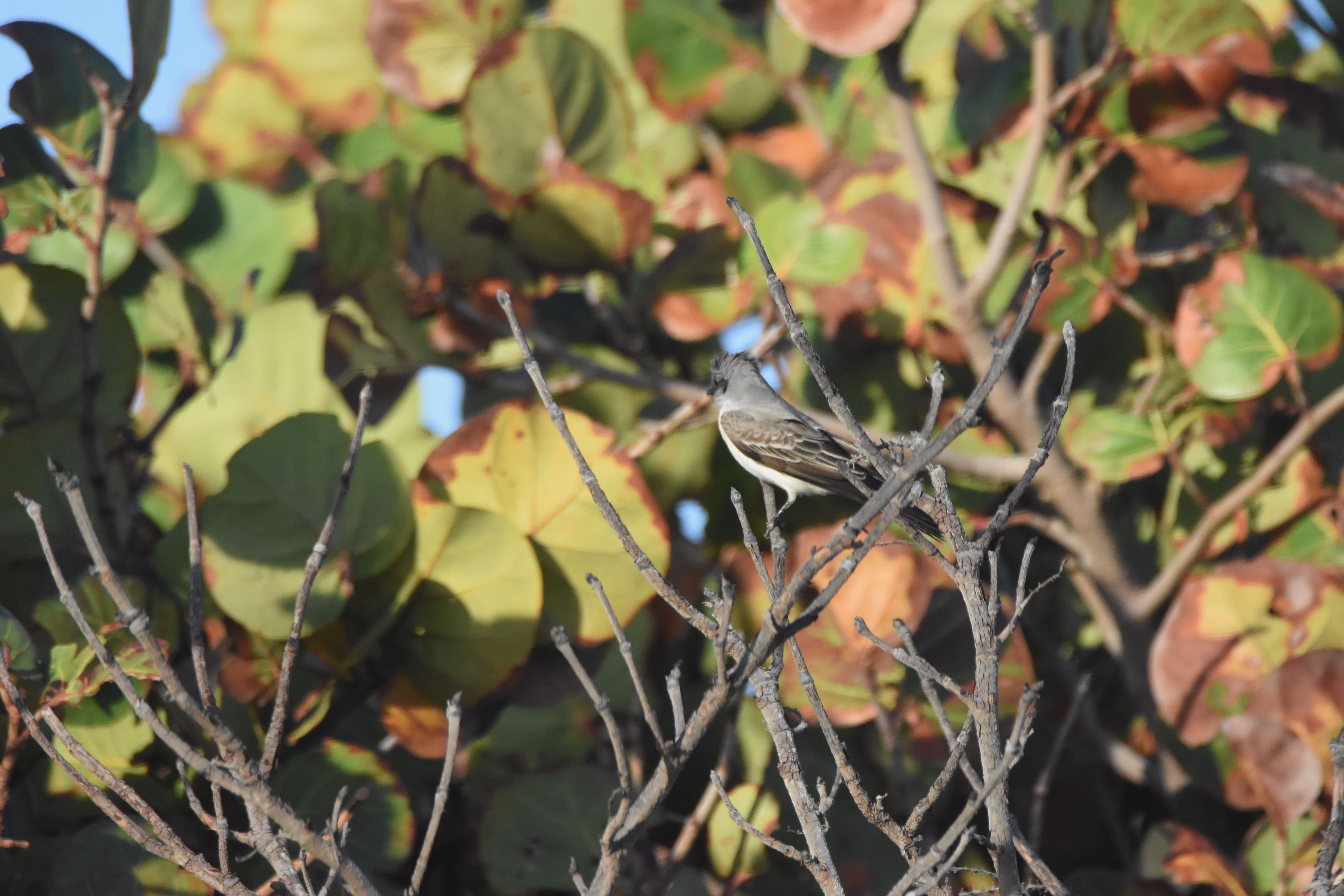 Mangrove swamps and off-shore mangrove islands are favorite nesting habitats for gray kingbirds, which explains why they their numbers drop off farther north along the coast and why they’re generally not seen far inland. It may in part account for some of the holes in our knowledge of these birds, since these places aren’t easily accessible for us. Gray kingbirds, however, have been spotted nesting more inland in South Florida within the past few decades, according to the Florida Fish and Wildlife Conservation Commission.