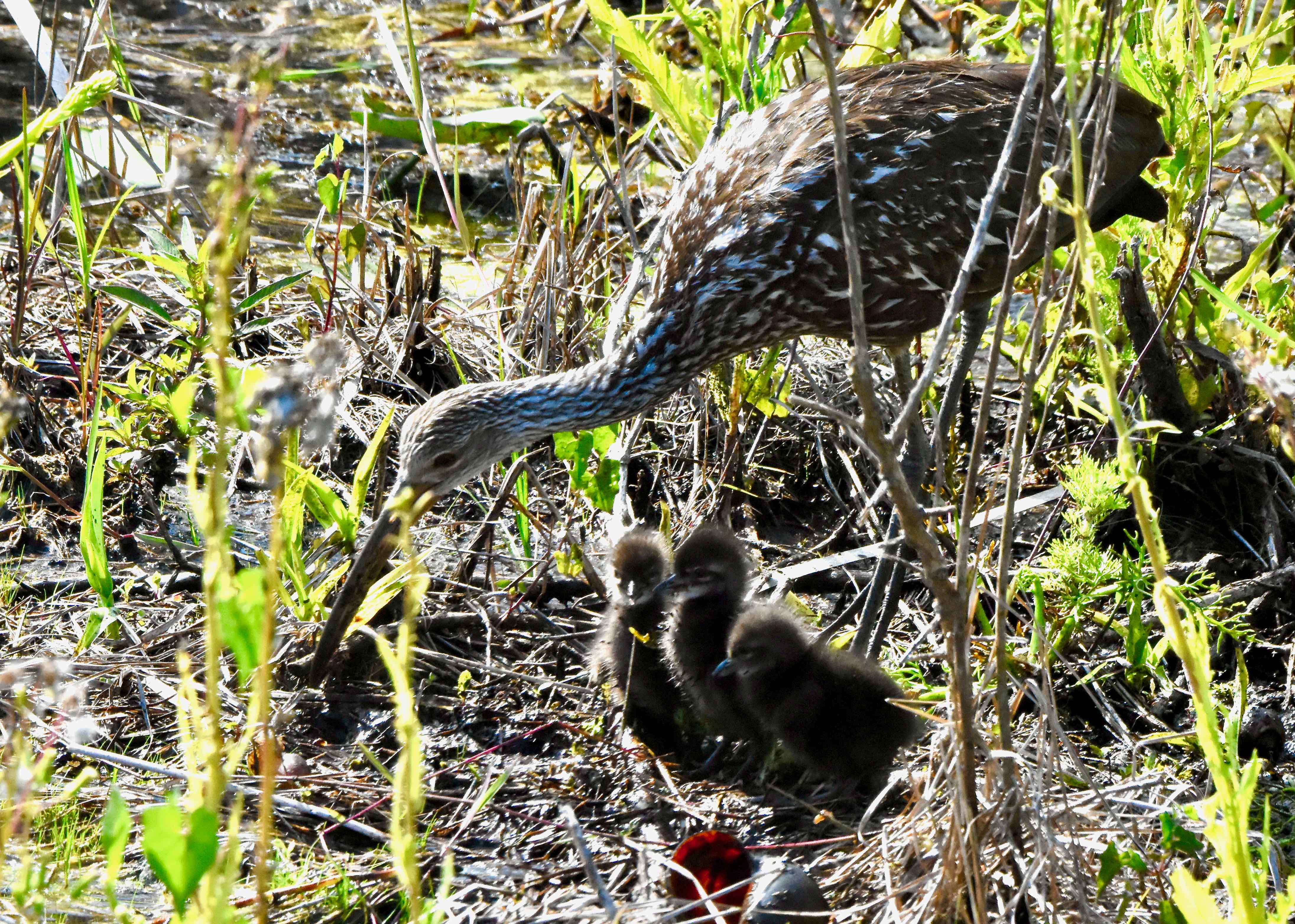 One other oddity: after caring for the offspring with her partner for several weeks, the females frequently will wander off into other limpkin territories. She might mate again with her old partner or find someone new.
