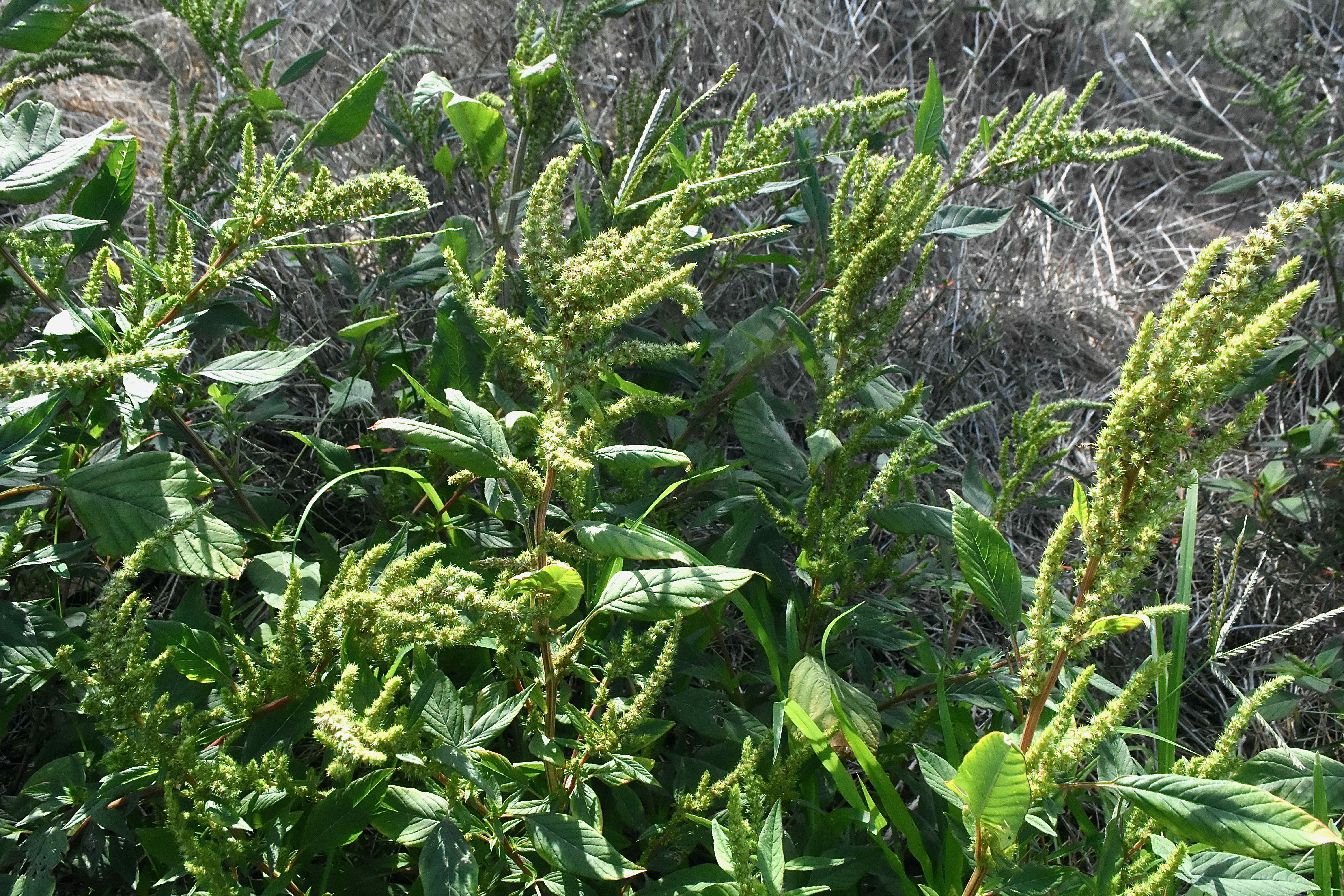 Pigweed, Amaranthus hybridus, giveth and it taketh, it's both blessing and curse. It's an extremely useful plant, providing food and medicine for many people, but also a weedy pest that invades crop fields and seriously reduces yields.