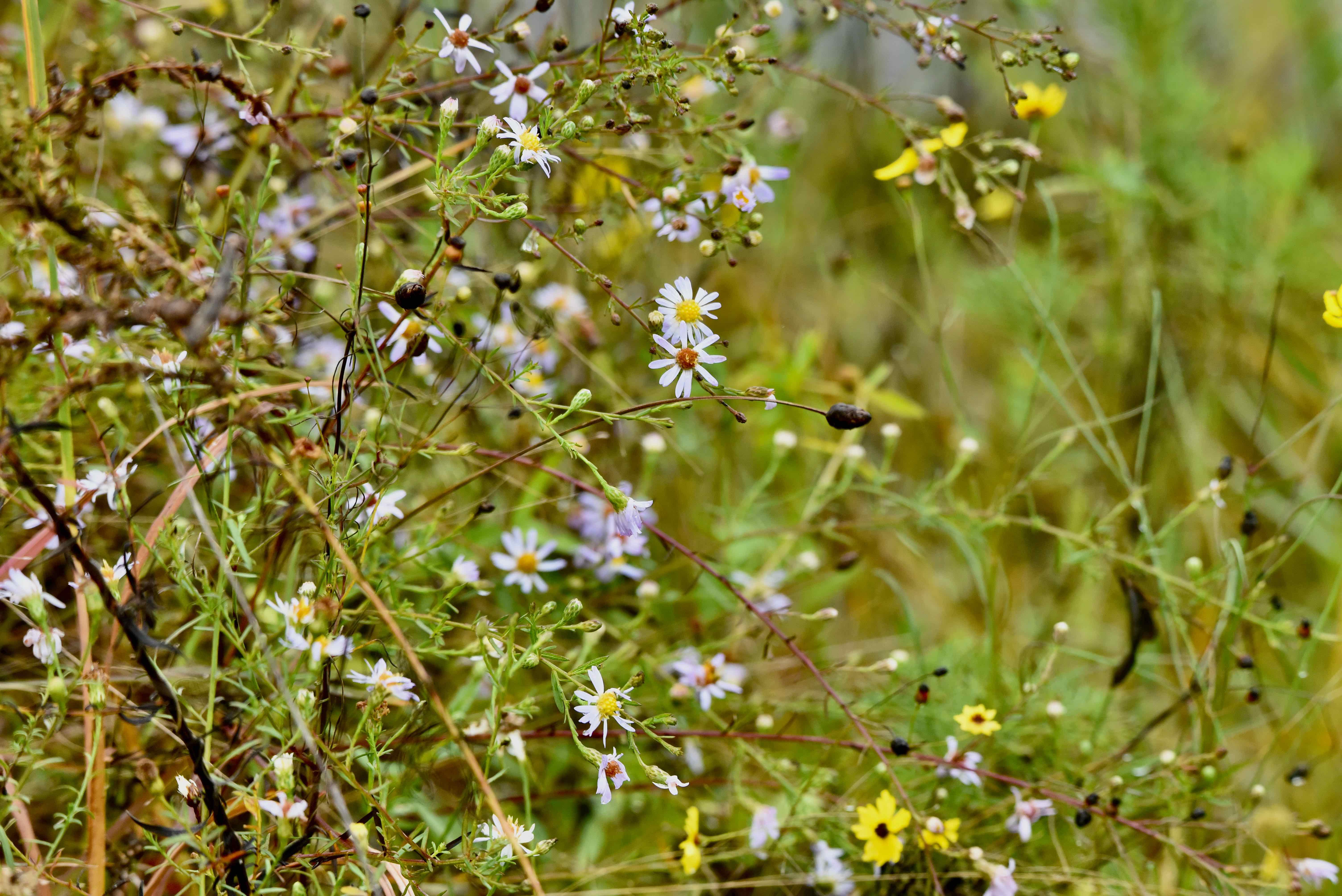 Rice button aster is a member of Asteraceae, the sunflower family. Other common names include bushy aster, wild aster and long-stalked aster.