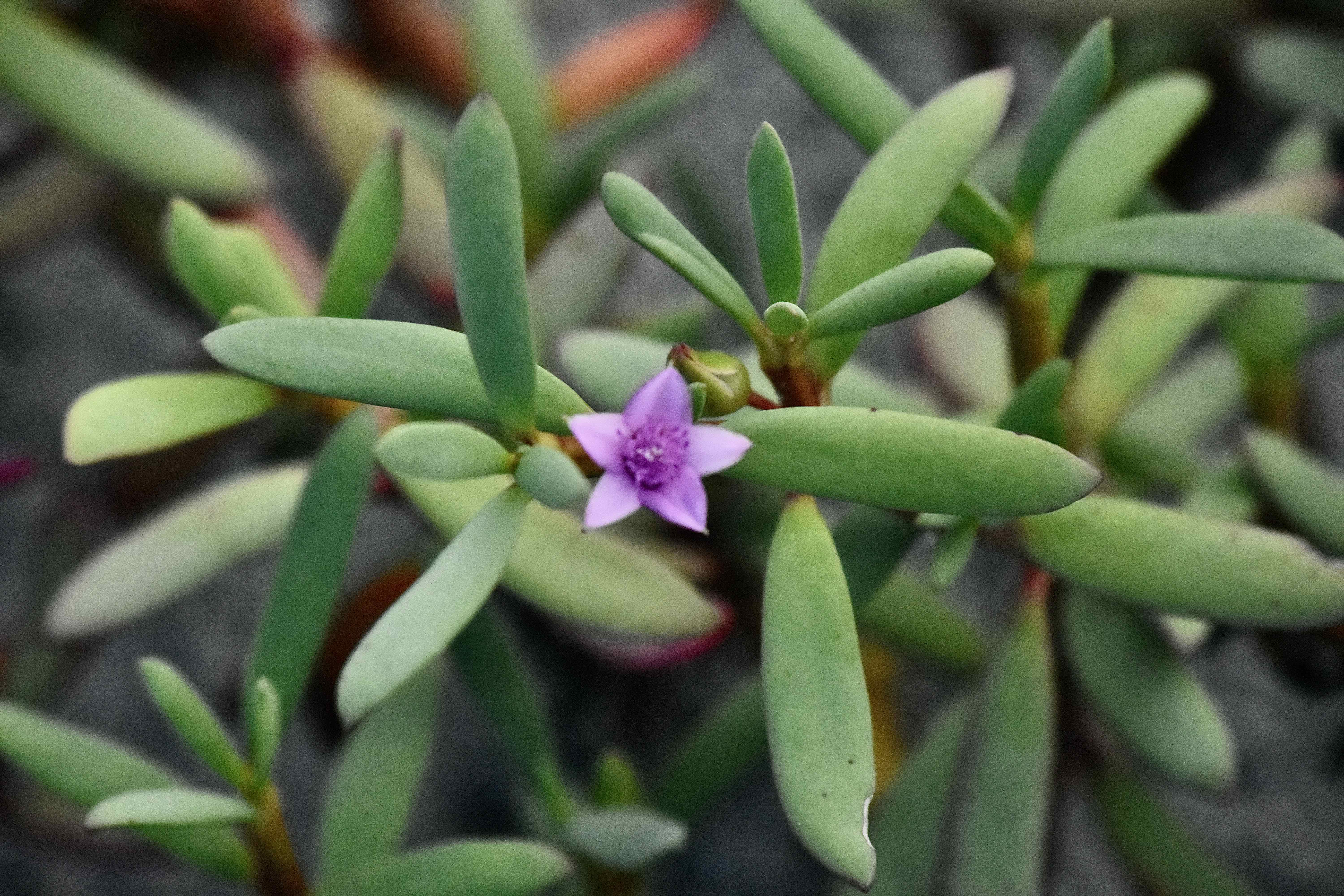 Sea purslane, Sesuvium portulacastrum, is a bit of a surprise. It is a beach plant found in warmer parts of the world, including Florida. It is a succulent, with thick stems and leaves.