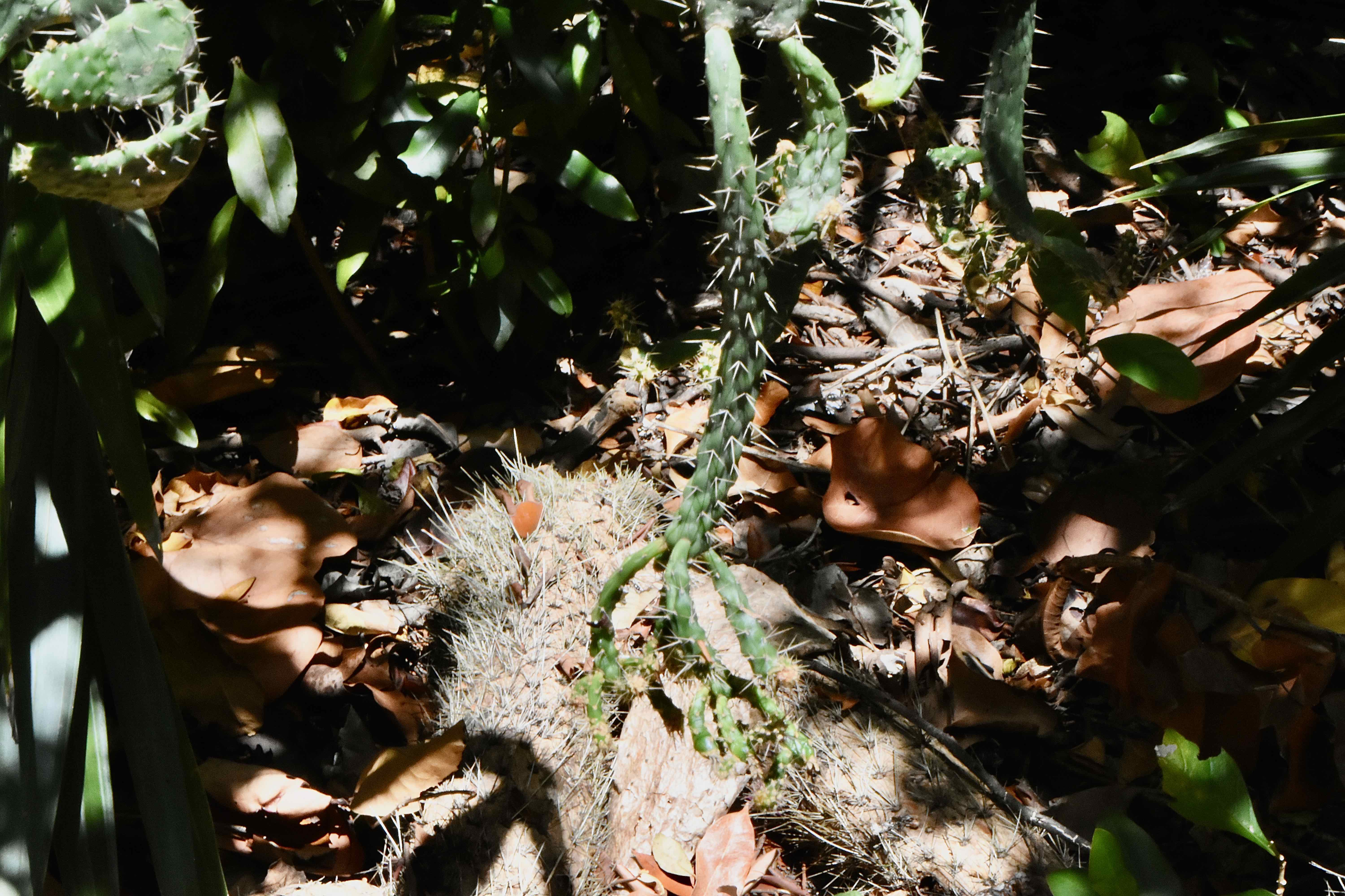 At one spot, the population is apparently entirely male — clones of each other — fruits rarely and produces few if any viable seeds. On top of that, it's under assault from a South American moth once exported to Australia to bring Down Under's invasive pricklypear population under control.