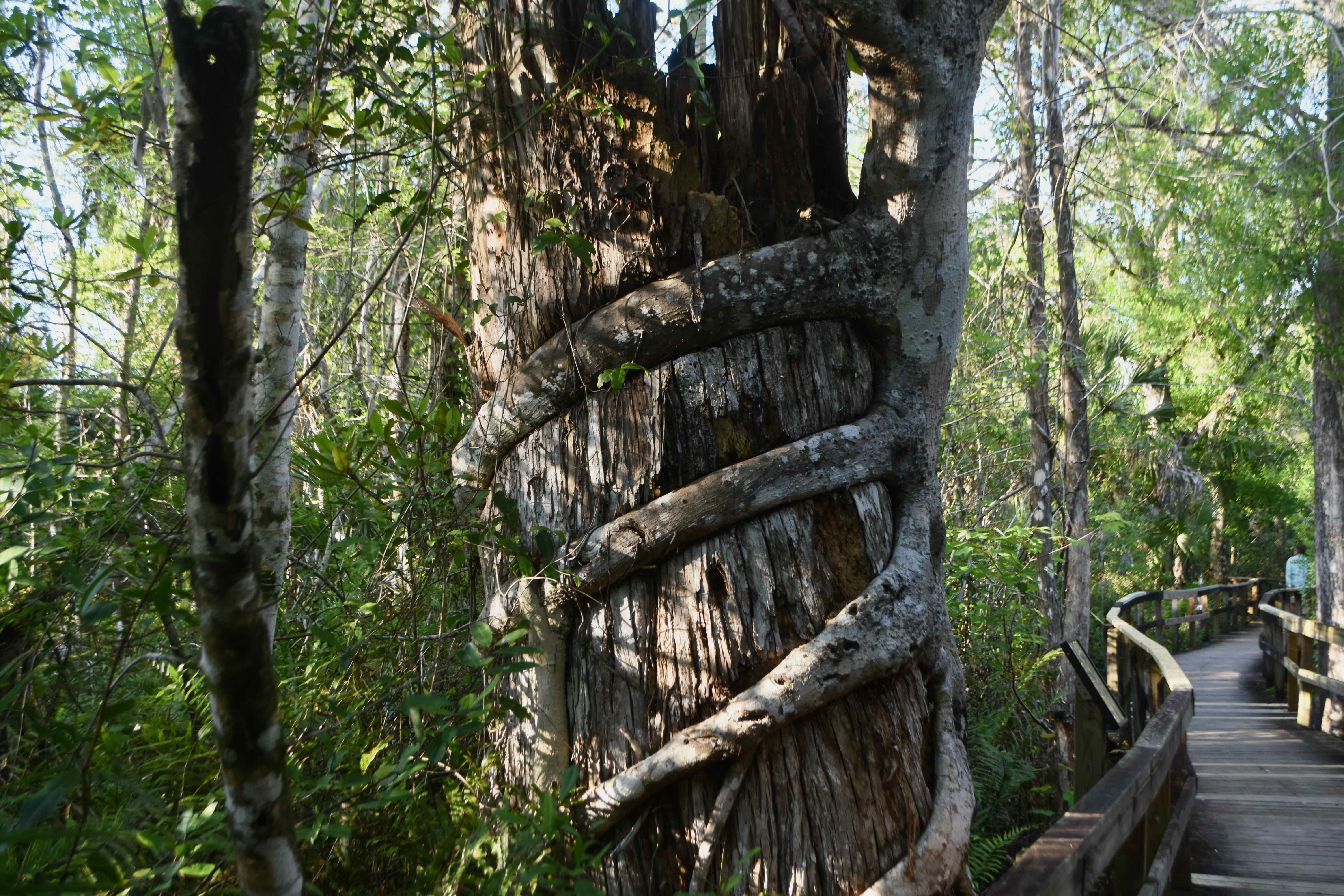 One more thing: its epiphyte beginnings are the perfect adaptation for its habitat. The floor of a hammock or a swampy cypress forest is a difficult place for a seedling to begin life because of the limited amount of light that penetrates through the canopy. By starting life higher up the ladder, so to speak, the strangler improves its chances of reaching sunlight and maturity.