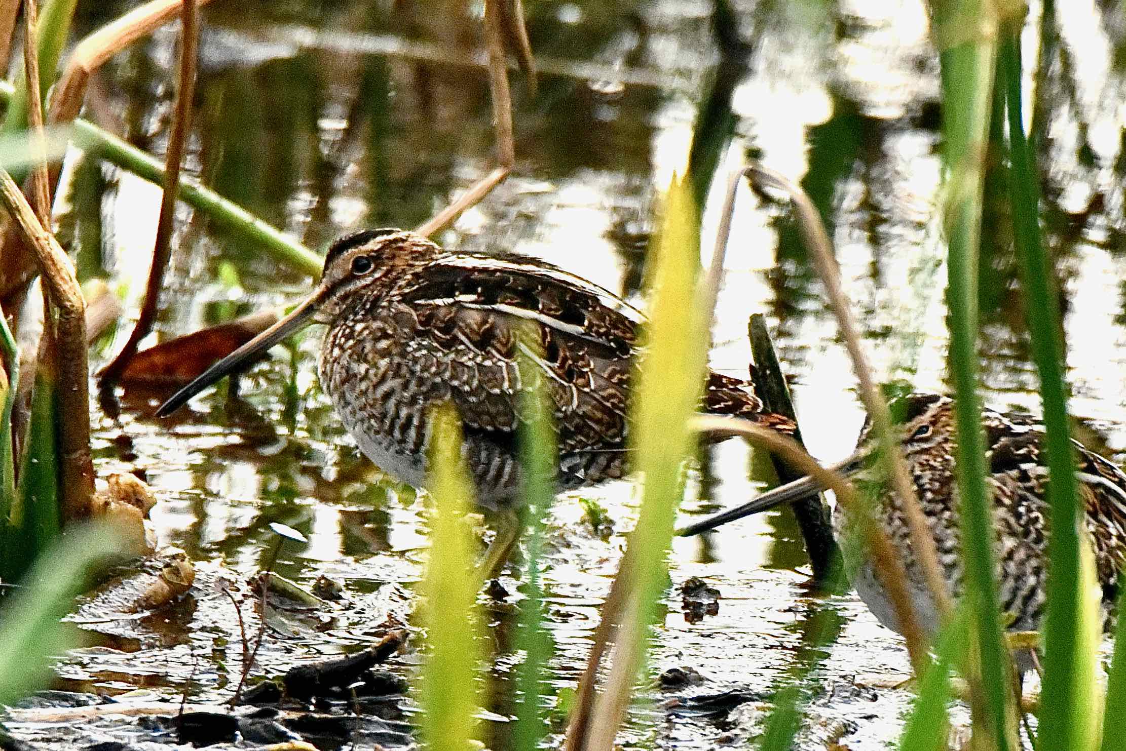 Post Note No. 2: We've seen Wilson's snipes in abundance at Green Cay Nature Center this winter for the first time since the photos on this page were taken 11 years ago. Doesn't mean they haven't been there, just that we haven't seen them. In any case, they've became a bit of an attractionn for photographers and bird watchers. We've added photos from this season's bunch.