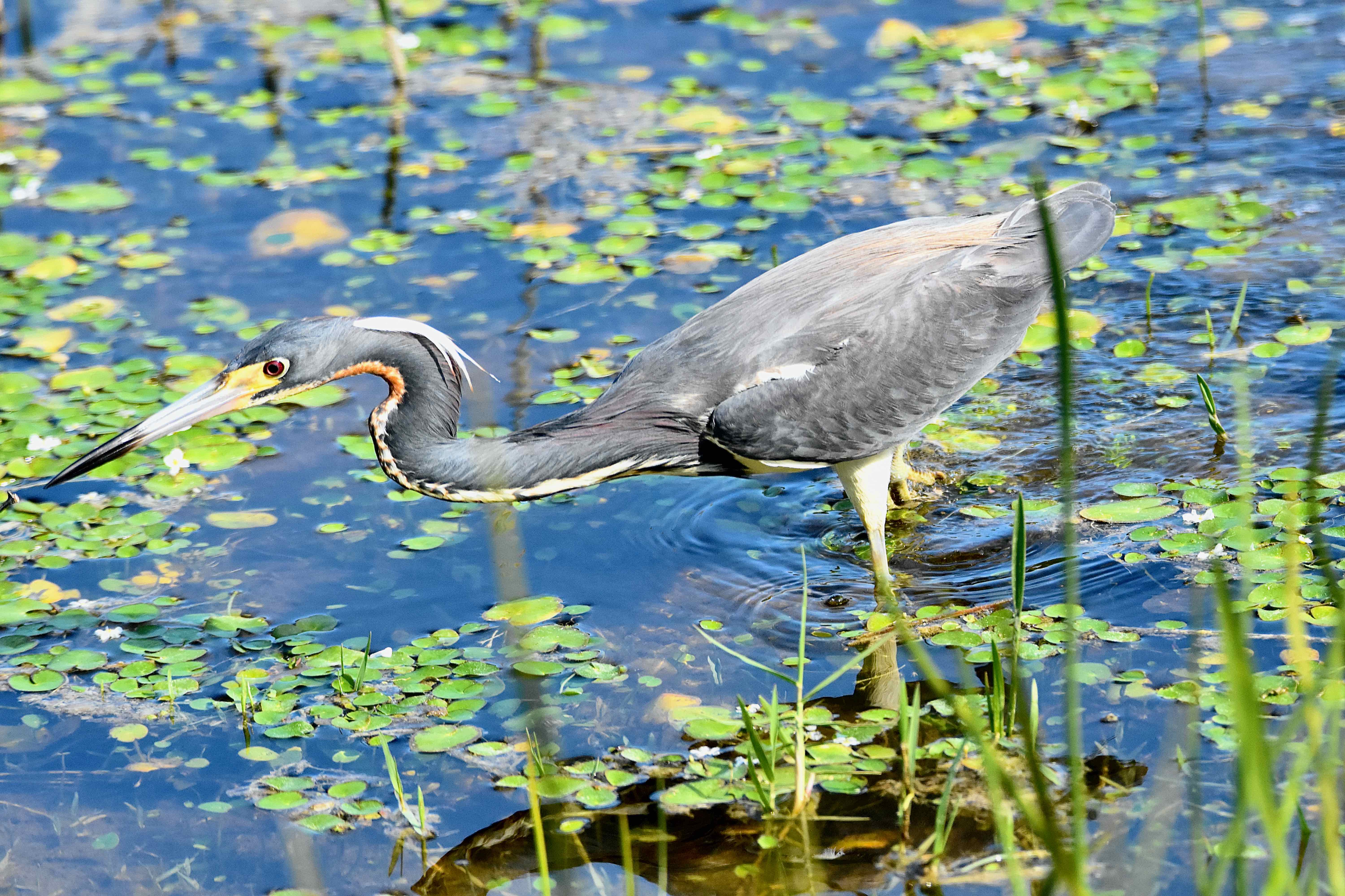 Cover Photo: A tricolored heron foraging through the shallows of Winding Waters Natural Area. In a large sense, Winding Waters was meant to provide habitat for shore birds like the tricolored, which is state-listed as threatened.